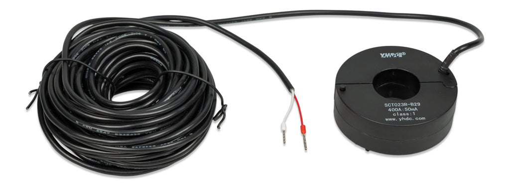 Victron strømtransformer til måling af høj strøm, udført som 400A:50mA med 10 m kabel. Velegnet til præcis strømovervågning i installationer med store belastninger.