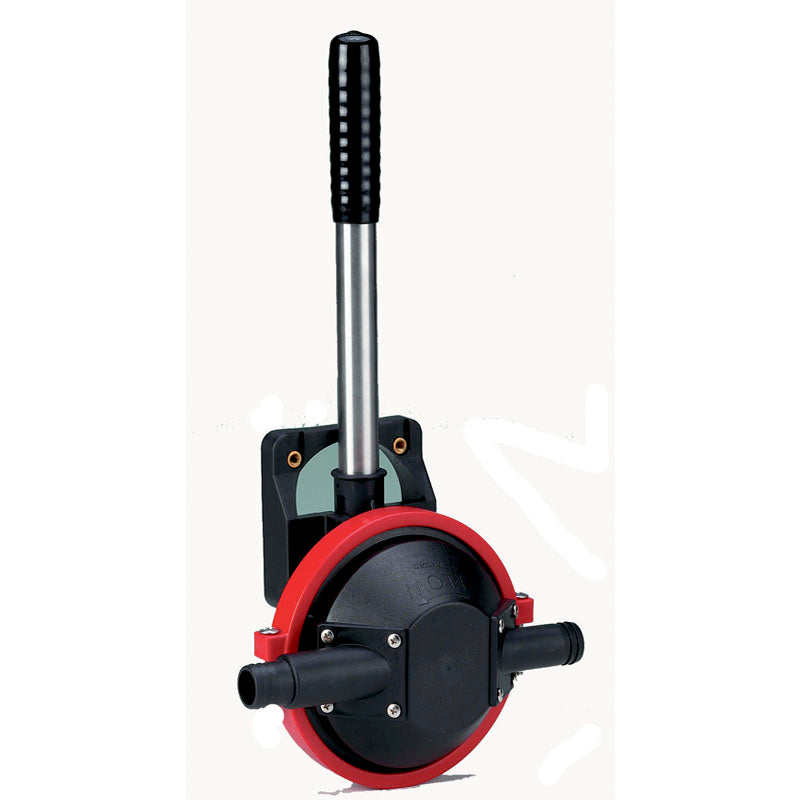 Håndlænsepumpe påmont. 230 x 210 x 130 mm: Kraftigt-ydende skotmonteret lænsepumpe. Selvansugende. Gennem dæk-model: Dæktykkelse 5-19 mm. Inkluderer: Monteringsklips til aftageligt håndtag.