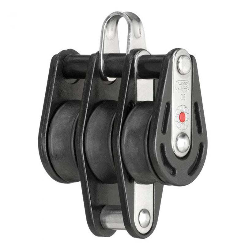 Hs Blok Fiber 3-Sk 8mm Hsv Svi kuglelejeskive 27x11,5mm er en robust blok til brug i riggen, hvor den leder tovværk sikkert og med lav friktion. Den er velegnet til trimliner, skøder og andre belastede træk ombord.