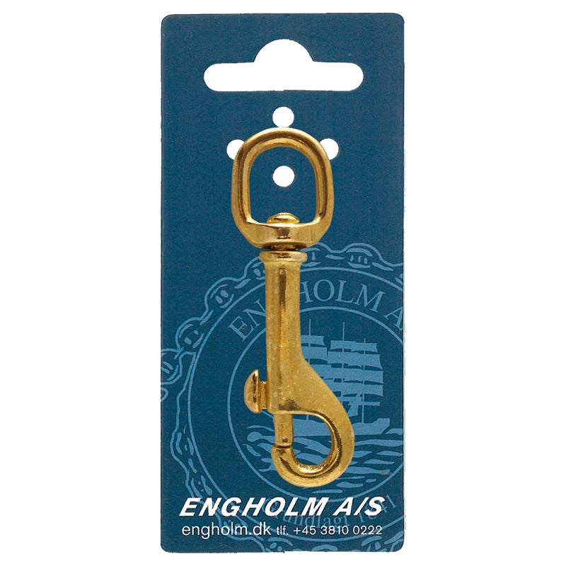 Karabinhage messing m/svirvel 225 B m/rundt øje: 12 mm er en kraftig karabinhage i maritim kvalitet til hurtig og sikker sammenkobling af tovværk og beslag. Den egner sig godt til skøder, barberhal, sikkerhedsliner og generelle fastgørelsesopgaver ombord.