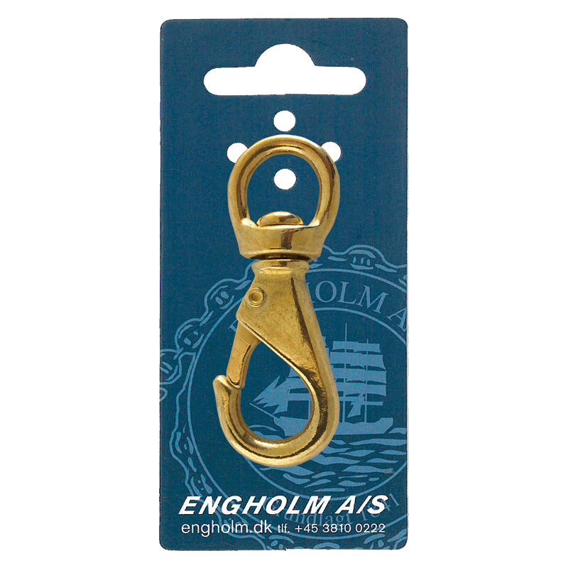 Karabinhage messing m/svirvel Nr. 3 118 mm 1 stk. er en kraftig karabinhage i maritim kvalitet til hurtig og sikker sammenkobling af tovværk og beslag. Den egner sig godt til skøder, barberhal, sikkerhedsliner og generelle fastgørelsesopgaver ombord.