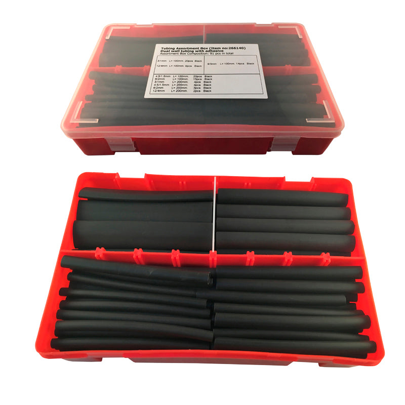 Krympeflex med lim assorterede 91 stk. i æske er en krympeflex-slange til efterisolering og mekanisk beskyttelse af samlinger og kabelsko. Ved opvarmning krymper den tæt omkring lederen og beskytter mod fugt og slid.