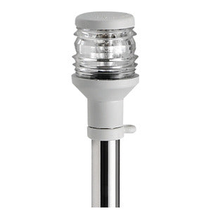 Lysmast fremstillet i AISI 316 rustfrit stål med hvid plastlanterne, egnet til fartøjer under 20 meter. Basen har selvspærrende højdejustering og konstruktionen er udelukkende i rustfrit stål. Produktet kan benyttes både som flagstang og som agterlanterne.