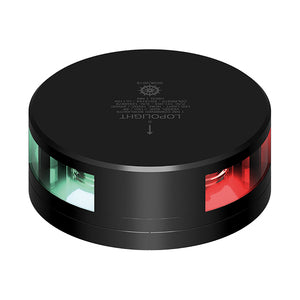 Kombineret styrbord/bagbord lanterne til horisontal montage.| Farve: Sort. Lys: Grøn / rød| Lyser i vinkler på 112,5° med en rækkevidde på 2 nm (2 sømil)| Passer til både på 12-20m.| Til 12/24V. Kabel på 2,5m medfølger.| Certificeret og overholder alle standarder. 100% vandtæt (IP68) | aluminiumshus.| 5 års garanti.| Mål: Ø92,5mm x 36 mm.| Vægt: 0.55 Kg