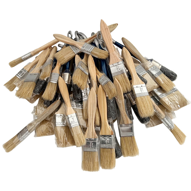 Penselmix ass. 50 stk./ps.: 50 pensler i forskellige størrelser. Hvert sæt består af: Fladpensel: 10 stk. 1” (25 mm) 10 stk. 1½” (38 mm) 10 stk. 2” (50 mm) 5 stk. 3” (75 mm) Rundpensel: 5 stk. 20 mm 5 stk. 25 mm 5 stk. 30 mm