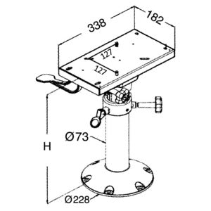 Både fod og søjle er fremstillet af anodiseret aluminium, og konstruktionen omfatter en integreret drejeligt glidesystem som muliggør rotation. Den faste type sikrer stabil fastgørelse af sædet til basen. Sokkeldiameteren måler 330 mm, mens søjlen har en diameter på 73 mm. Velegnet til brug hvor der kræves både bevægelighed og stabil placering.