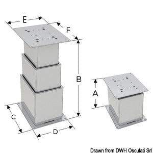 Sættet indeholder en elektrisk søjle med mulighed for 2- eller 3-trins højderegulering. 3-trins udførelse kan desuden synkroniseres i par ved brug af en separat synkroniseringsboks. Bordbenet har fast monteringsplade i både bund og top og kan specialbestilles i andre højder ved større antal.